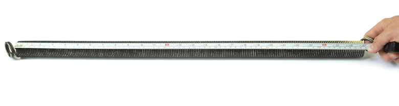 van de veer in elkaar als de veer uitgerekt is.